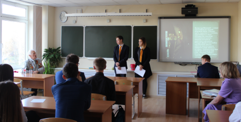 | | Урок к 75-летию Битвы под Москвой | 03-10-2016 28 сентября 2016 года в 10а Роснефть-классе состоялсятематический урок, посвященный 75-летию Битвы под Москвой. Битва под Москвой - самая масштабная во второй мировой войне. Именно здесь, недалеко от столицы крупнейшего в мире государства, гитлеровская армия впервые потерпела серьезное поражение. На урок был приглашен ветеран Великой Отечественной войны Николай Васильевич Лисовенко. Война началась, когда Николаю Васильевичу было всего 10 лет, поэтому уже в юношеские годы на его судьбу выпало много испытаний. Он рассказал о событиях битвыв мельчайших деталях, продемонстрировал свои медали и с радостью ответил на вопросы ребят. В заключение своего рассказа Николай Васильевич сказал фразу, которая всем особенно запомнилась: «Эта битва была не такая как все, ведь в ней участвовала вся страна!».