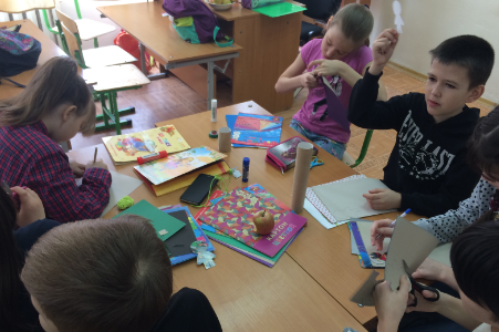 Середина смены весеннего лагеря. Все ребята без исключения сегодня остались довольными, так как этот день был посвящен мультипликационным фильмам. Отряды посетили школьную библиотеку, где им показали известные мультфильмы по произведениям С. Маршака «Книжка про книжку» и С. Михалкова «Дядя Степа», после чего ребята разобрали просмотренное и поделились благородными поступками из личного опыта. Настало время любимых настольных игр: монополия, Uno, мафия и башня дженга. Еще одно увлекательное занятие - арт-терапия, вместе с педагогом доп. образования Ивановой Е. В. отряды рисовали плакаты в преддверии Дня космонавтики. День закончился просмотром Эмоджи фильма, который дети выбрали голосованием. | | Второй день весеннего лагеря «Княжество мастеров» | 11-04-2018